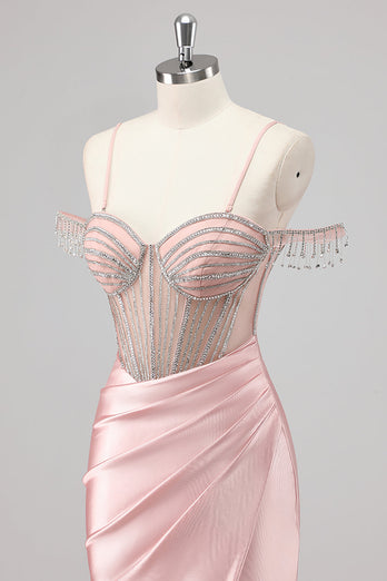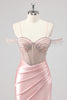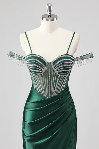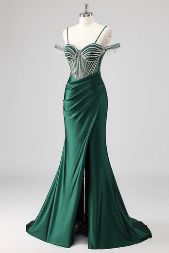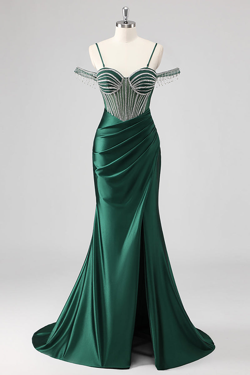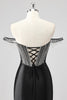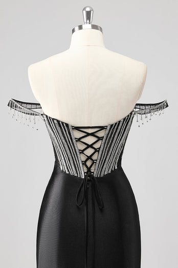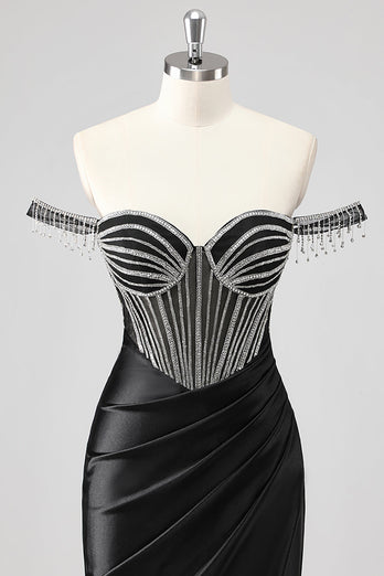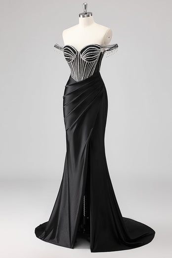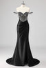 Sparkly Black Mermaid Off the Shoulder Beading Long Prom Dress with Slit