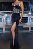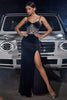 Sparkly Black Spaghetti Straps Beaded Prom Dress with Slit