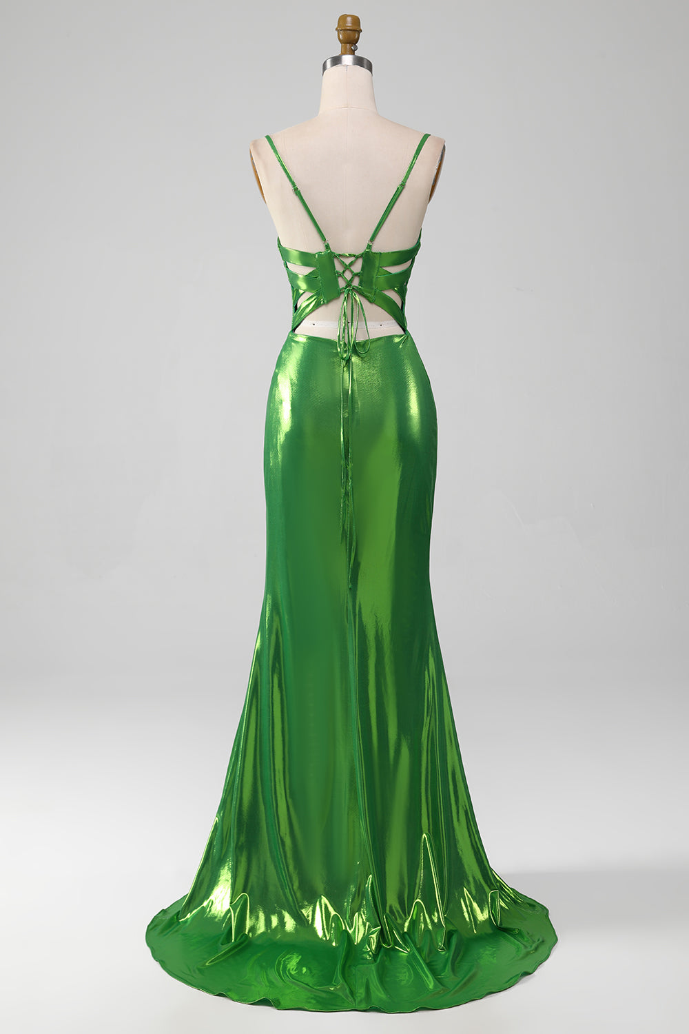 Sparkly Hot Pink Mermaid Simple Prom Dress With Slit