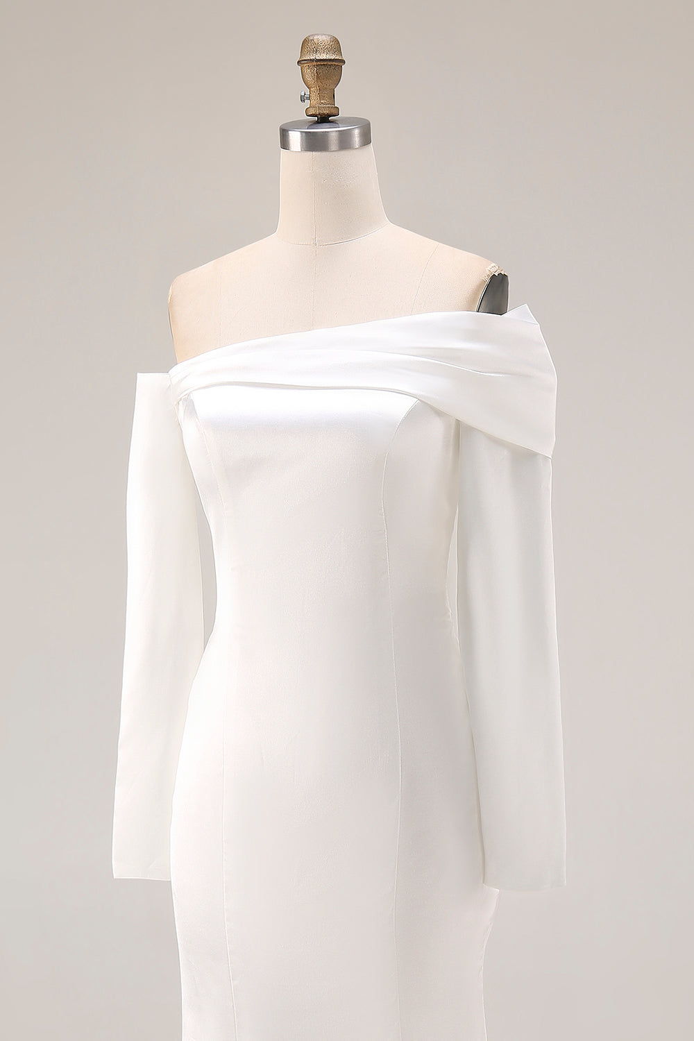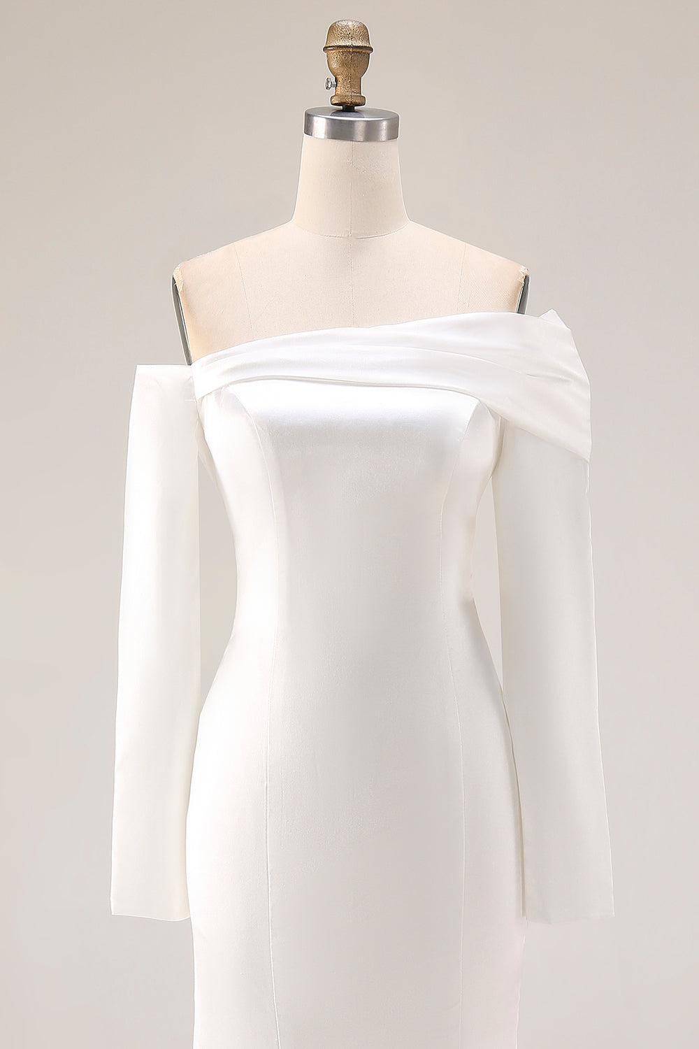 White Mermaid Off The Shoulder Wedding Dress with Long Sleeves