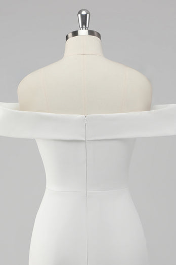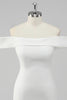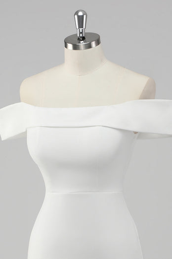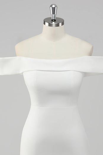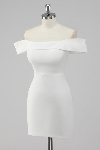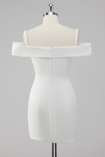 White Bodycon Off the Shoulder Satin Short Graduation Dress
