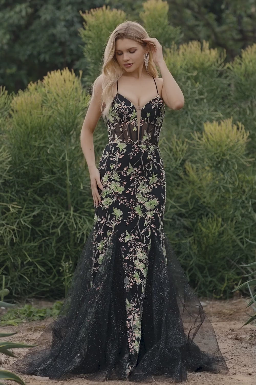 Yellow Mermaid Corset Floral Lace Up Back Long Prom Dress with Sequins
