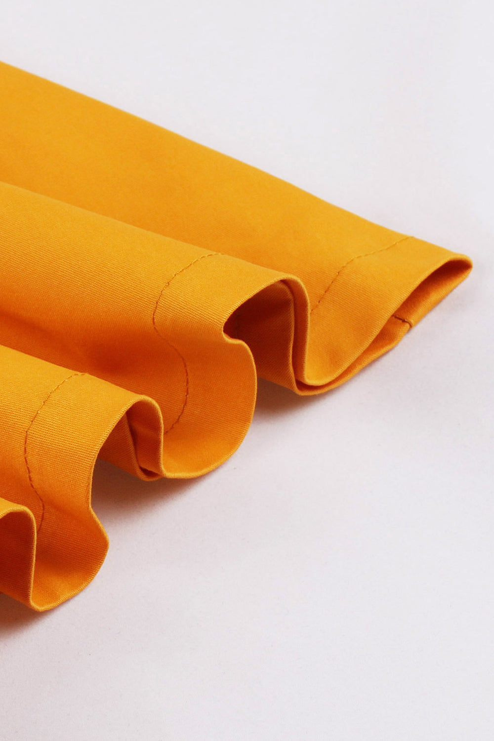 Yellow Ruffled Notched Lapel Belted Bows 1950s Dress with Pockets